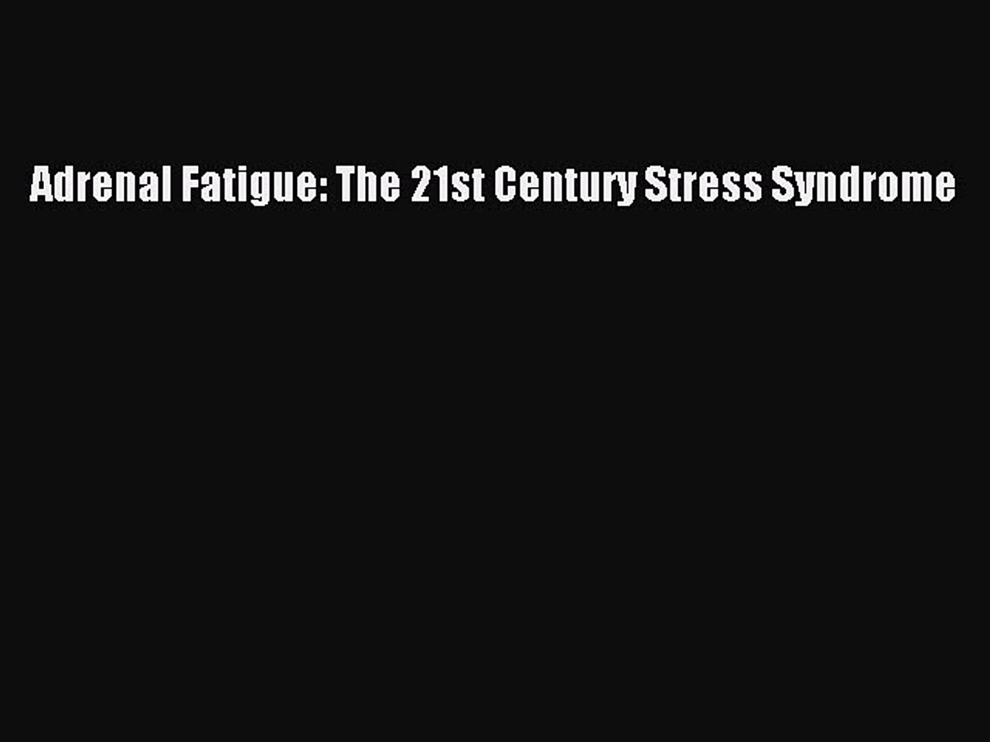 Adrenal Fatigue The 21st Century Stress Syndrome Wilson James L
